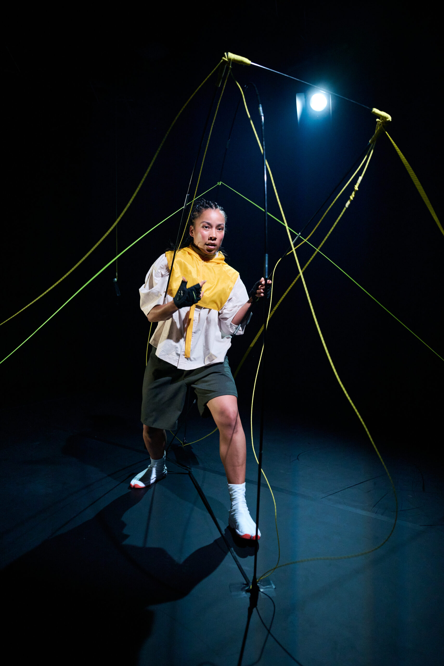 In OUR FUTURE lädt die Tänzerin Laura Schönlau das Publikum in einen spekulativen Trainingsort ein. Inmitten einer fragilen Konstruktion übt sie Angriff und Verteidigung, erprobt, was es heißt, für etwas einzustehen. Begleitet von den Stimmen und Perspektiven der Jugendlichen entfaltet sich ein vielstimmiges Solo – zwischen Bewegung und Klang, Spekulation und Hoffnung, Ausblick und Weitsicht.